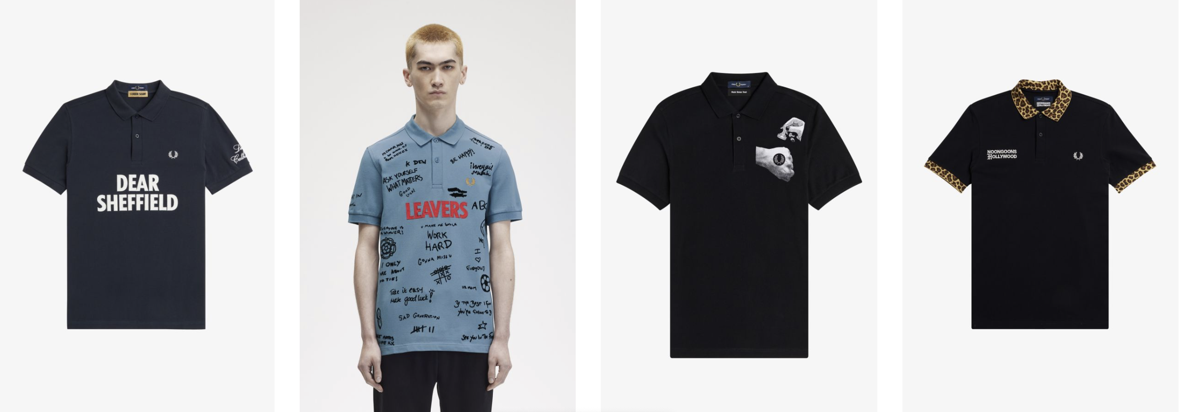 The Fred Perry Shirt คือเสื้อโปโลรุ่นคลาสสิกยอดนิยม แนะนำได้แก่รุ่น M3600,M6000 และยังมีอีกรุ่น Made in England ได้แก่รุ่น M12 และ M3 ใช้ความแตกต่างความพรีเมียนและการผลิตของเสื้อ เป็นต้น และ Fred Perry Shirt ยังมีรุ่นอื่นๆ เช่น City Releases ที่เป็นรุ่น limited release  โดยจะมีขายในเฉพาะตามเมืองนั้น และรุ่น Collaborations ที่ทางแบรนด์ได้ทำการคอแลปกับแบนด์อื่นเช่น Amy Winehouse ,George Cox ,Ape Bepe และแบรนด์อื่นๆเป็นต้น